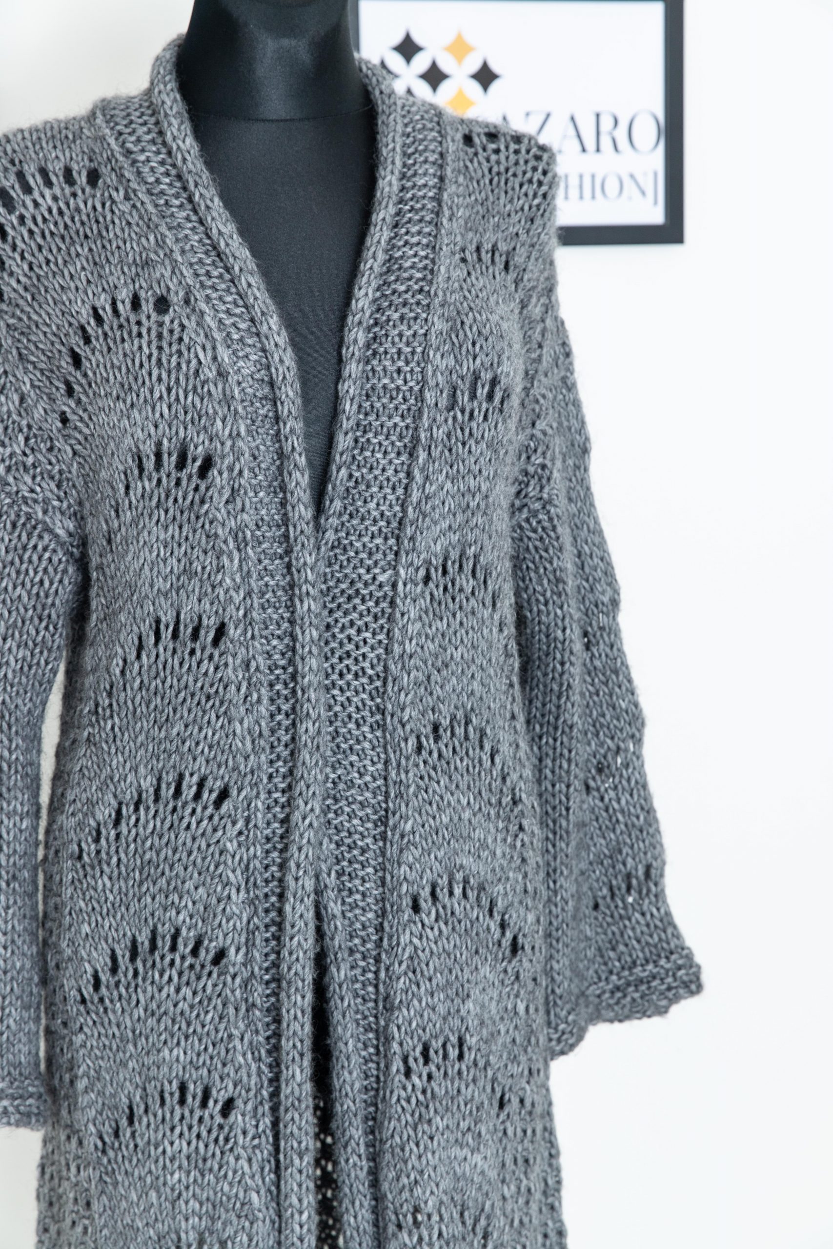 Szary włoski kardigan z warkoczami